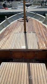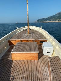 Gozzo cilentano in legno con motore Nanni diesel 40 cv, con argano salpa ancora elettrico, (catena 50 m), piccolissima cabina/stiva con mobili in legno su misura, spiaggetta di poppa con scaletta di acciaio e tek due pompe di sentina ecc., pronto e visibile al pontile a Salerno