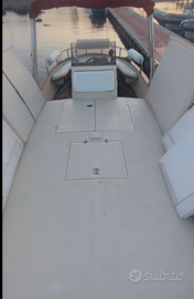Dotata di doccino, stereo FM e bluetooth, salpancora elettrico, 2 sentine di cui una automatica e manuale l'altra solo manuale, stacca batterie, 2 batterie, luci di coperta e navigazione, spiaggetta nuova di ottima fattura con scaletta telescopica in acciaio,gps , cuscineria in parte rifatta come si evince dalle foto, doppio tendalino su roll-bar davvero grande, tavolo pieghevole a scomparsa custom, ( possibilità di allestire il gavone di prua come cuccetta doppia volendo anche con wc ) ATTUALMENTE SOLO GAVONE