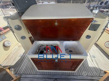 Letto matrimoniale prua e divano a "L" trasformabile in letto.
