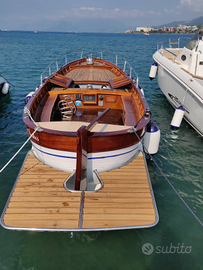 Bellissimo Gozzo con ottime rifiniture, curato maniacalmente. Rimessato sempre al coperto, dotato di tendalino , cuscineria prendisole di prua di ben 3 metri di lunghezza realizzata in poliuretano e tessuto sunbrella marino.