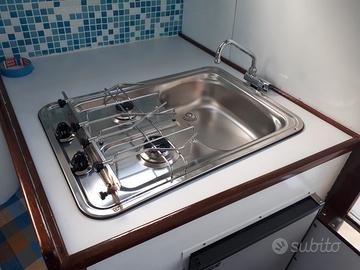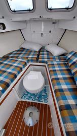 CUCINA 2 FUOCHI, LAVELLO, FRIGORIFERO, WC ELETTRICO, DOCCIA ESTERNA, SERBATOIO ACQUA 50 LT, 2 BATTERIE DA 100 A, CUSCINERIA INTERNA ED ESTERNA 2023, COPERTURA INVERNALE E TENDALINO ESTIVO NUOVI, GPS/ECO HUMMINBIRD HELIX 7