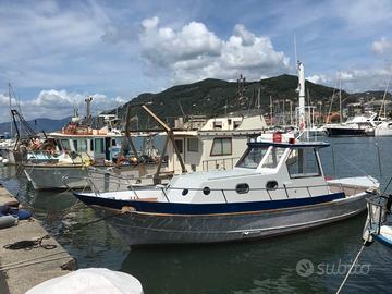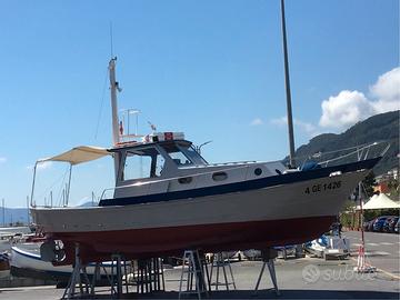 GOZZO CABINATO CON LICENZE DI PESCA COSTIERA ENTRO LE 6 MIGLIA (CON POSSIBILITA' ALLE 12): RETI DA POSTA, PALANGARI, LENZE, ARPIONE, NASSE, ECC. LICENZA ROSSETTI. BIANCHETTI NO (LIBRO GIORNALE) STAZZA 3GT. LUNGHEZZA MT 7,94 SCAFO IN LEGNO CON FASCIAME DI LARICE DA 2 CM. ORDINATE IN LEGNO DI ROVERE, COPERTA IN TEAK POSATA SU BAGLI DI IROKO, BAGLI CABINA IN MOGANO. BARRE ANTIROLLIO LATERALI SU OPERA VIVA E ALETTONE DI POPPA. ALBERO IN ACCIAIO CON SCARICO FUMI MOTORE PRINCIPALE IN TESTA E BIGO DI SOLLEVAMENTO QUATTRO CUCCETTE (UNA CONVERTIBILE IN DINETTE CON TAVOLO E SEDUTE) LOCALE SANITARIO SEPARATO IN CABINA CON WC ELETTRICO MOTORE YANMAR 4LHA240(A)TE ORE DI MOTO 532 VELOCITA MASSIMA 14 NODI MOTORE AUSILIARIO E VERRICELLI NANNI DIESEL 30 CV ORE DI MOTO 42 DUE POMPE DI SENTINA MECCANICHE E DUE ELETTRICHE E LAVAGGIO COPERTA. DUE SERBATOI GASOLIO DA 150 LITRI CADAUNO IN VANO MOTORI UN SERBATOIO ACQUA 80 LITRI IN VANO A PRUA UN VERRICELLO SALPARETI-PALAMITI IDRAULICO E UNO ELETTRICO (PALAMITI) DUE CELLE FRIGORIFERO CON MOTORI ELETTRICI. BUONE CONDIZIONI GENERALI SIA SCAFO CHE MOTORI. OMOLOGATA PER SEI PERSONE CON AUTORIZZAZIONE PESCATURISMO DUE GRUPPI BATTERIE DA 100X2 AH, CARICABATTERIE ELETTRONICO DA SOSTITUIRE. ECOSCANDAGLIO A COLORI, APPARATO RADIOTRASMITTENTE VHF, NAVIGATORE CARTOGRAFICO. POSSIBILITA’ DI UTILIZZARLA AL DIPORTO (NATANTE) RESTITUENDO LA LICENZA DI PESCA. VISIBILE IN PORTO LUIGI GATTI – MOLO PESCATORI – CHIAVARI