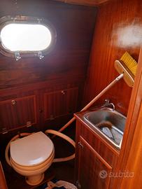 Locale WC + lavabo . Cucina a gas con 2 fornelli + frigo+ . Ampi spazi di stivaggio. Pozzetto in teak con il suo tavolo.