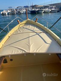 Gozzo Ligure da 5 MT, cuscineria ,tentalino 4 archi in acciaio ,doccia,plancette di poppa con scaletta,serbatoio carburante da 50 litri poggia schiena laterali, motore Mercury da 20 Cv 4 tempi anno 2023con avviamento elettrico,