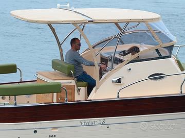 La velocità massima è di oltre 30 nodi. Il 28 Cabin, disponibile in vari colori, è un'imbarcazione con linee e forme moderne pur mantenendo classicitá ed eleganza. È disponibile su richiesta un tendalino che copre completamente il pozzetto. La pedana di poppa nasconde al suo interno una pratica scaletta per la discesa in acqua.