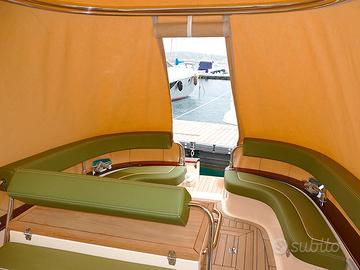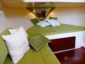 Negli interni troviamo un comodo letto matrimoniale e un divano letto (che offrono complessivamente tre posti letto). A prua sono presenti un ampio prendisole e un divano; il pozzetto a poppa risulta comodo e vivibile con un divano e la seduta di guida che nasconde al suo interno una cucina con fornello a due fuochi e un frigo. Tutto ciò rende la navigazione molto piacevole; la sicurezza è ottimale, anche per le lunghe traversate, grazie ai due motori abbinati a una solida e performante carena planante in vetroresina.
