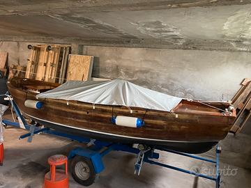 Gozzo in legno di mogano in perfette condizioni , completo di carrello per alaggio non targato + 1 confezione nuova di anti vegetativa.