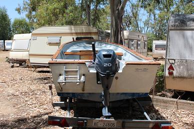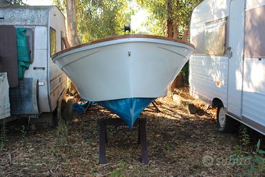 Barca da pesca tipo gozzo con vasca per il vivo completo di motore 25 hp 4 tempi, con possibilita di carrello