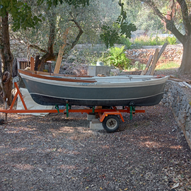 Gozzo in vetroresina con interno in legno, rimorchio completamente restaurato, , prezzo discutibile