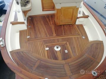 Anno 2003 .Due motori VM da 165 CV in perfette condizioni con 700 ore di moto come da foto. Gozzo semiplanante.Due cucine(interna ed esterna). Lunghezza f.t. 8.10.Pilota semiautomatico. Posti letto 2+1. Legno sulla coperta e pozzetto 2024. Tappezzeria interna ed esterna 2022
