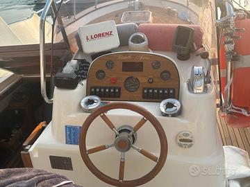 Vendesi Fratelli Aprea 7.50 anno 2002 - modello open cruise - ottimo stato - Motore Yanmar 4LHA- DTP 147 KILOWATT 200 mhp - ore 1540 - manutenzione motore regolarmente effettuata - 9 mesi l'anno in capannone coperto - letto matrimoniale, bagno separato, angolo cottura con frigo e lavello - Vhf mod. cobra Mr F 55 W 25 W- ecoscandaglio Garmin - cartografico Lorenz colori - bussola, doccetta esterna, salpa ancora, caricabatterie, cavo 220v - stereo- plancetta di poppa in acciaio inox con carabottino in teck e scaletta bagno estraibile a scomparsa - Rollbar in acciaio inox - cuscineria esterna rifatta- tendalino pozzetto - dotazioni sicurezza complete- teli di copertura consolle- cabina e divanetto. Visionabile al Porto di Policastro (Sa) fino al 31 ottobre poi visionabile in cantiere sempre zona di Policastro. Eventuali richieste di prove a mare sono subordinate all'accettazione di una offerta sottoscritta di acquisto.