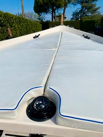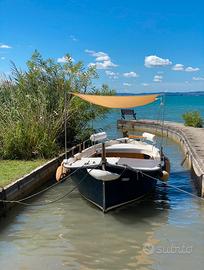 Gozzo cantiere Gobbi 6,5 mt, scafo (6,5x2,3 mt) vetroresina AUTOSVUOTANTE, condizioni eccellenti. SOLO E SEMPRE LAGO di Garda, dimostrabile con pagamenti posto barca. Cuscineria completa in pelle nautica nuova, moquette antiscivolo. Tutte le dotazioni di sicurezza nuove, luci di via, bussola, tromba, 8 salvagenti, 1 anulare, estintore, razzi etc… Motore Volvo Penta diesel (no patente), pochissime ore, appena revisionato e tagliandato. Consumi nulli (circa 1,5 lt/h a 7 nodi). Serbatoio carburante inox 40l. Batteria nuova Impianto stereo hi-fi Alpine da 500w, presa 12v Tutti i dettagli, timone (nuovo in inox), remi, gavoni, prua, scaletta, bandiera, sono in mogano massiccio intarsiato. Scafo appena lucidato e antivegetativa nuova. Tendalino nuovo in inox, parabordi con copri in spugna, cime in treccia nuove, ancora etc. Telo di copertura robusto su misura, struttura in inox. Pronta in ogni dettaglio per la stagione! Barca visibile a Lazise per qualsiasi prova Prezzo trattabile Possibilità di trasporto Per info 3925345170 Filippo Non scambio con gommone, moto d’acqua, motoscafo o altro