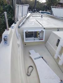 Gozzo in vetroresina Motore Yanmar 3 cilindri 30 CV in condizioni perfette. Vericello a prua nuovo 2 portacanne 2 pompe di sentina Doccetta Roll bar con Tendalino .