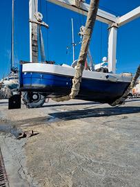 Gozzo in vetroresina di metri 6 con motore entrobordo VM con solo 900 ore di moto, gozzo ideale per battute di pesca, trolling valve, vasca del vivo, 2 pompe di sentina automatiche, pulsantiera e impianto elettrico nuovo..per altre informazioni 3272112778