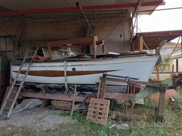 vendo gozzo legno 7m da ricondizionare motore seminuovo su carrello per rimessaggio