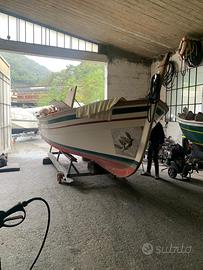 Vendo bellissimo Gozzo Ligure Muscun 7,3 metri cantiere Olivari di Santa Margherita Ligure, in vetroresina completamente pontato in teak, in perfette condizioni sempre tenuto in rimessaggio al coperto e mantenuto, motorizzato con Nanni diesel Mercedes da 25cv fiscali regolarmente mantenuto consumo 5 litri ora, 2 serbatoio acciaio per il diesel, serbatoio da 70 litri per il doccino, verricello elettrico con telecomando a prua e comandi a poppa nel pozzetto, due pompe di sentina automatiche e una manuale, tendalino, copri pozzetto, cuscineria nuova, completo di tutte le dotazioni di bordo e corredato di tutta la documentazione. Ha solo da fare antivegetativa e tagliando, che posso provvedere io tramite accordi. Barca che ad oggi nuova nella configurazione come sopra elencata ci vogliono 110 mila euro. Possibilità di carrello biasse revisionato e possibilità trasporto tramite accordi