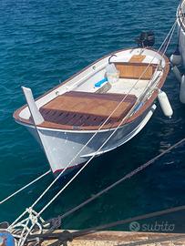 Vendo "gozzo" (come da foto) di 5 mt. in vetroresina con finiture in legno, motore fuoribordo da 15 cv, con accensione elettrica. Il tutto in perfette condizioni e subito disponibile.