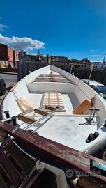 Vendo gozzo Mimi 6.50 mt funzionante appena tirato fuori dall'acqua, Carena portata a zero e rifatta l'anno scorso. Motore entrobordo Farymann diesel 18 CV (anno 1982) impianto elettrico rifatto recentemente ed in ottime condizioni Batterie nuove Dotato di doccetta La barca è sempre stata utilizzata per la pesca, quindi non dispone di tappezzeria né di tendalino Barca da lavare e tornare in mare Prezzo trattabile