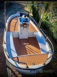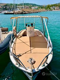 Meraviglioso gozzo semiplanante cantieri mimi libeccio 6 mt più 80 cm di spiaggetta . Teck in gomma nuovo , impianto elettrico nuovo , motore fnm 120 cv appena rettificato in tutto ( portato a zero ore ) con turbina con 1 anno di garanzia consumi irrisori 10nodi crociera 13Max ! Doccetta , impianto radio marine , serbatoio acqua 42 lt , tendalino anteriore e posteriore nuovi con cuscineria nuova mai usata immacolata , illuminazione a led su tutta la barca , porta canna 2 , scaletta pieghevole , parabordi in tinta 6 , ecoscandaglio garmin , pompa di sentina 2 ! Copri consolle in tinta nuova , antivegetativa appena applicato . Unico lavoro da fare lucidatura carena per renderla veramente perfetta ! Pronta ad affrontare la stagione ideale per passeggiate o per pesca professionale portata 8 persone . Visibile e provabile a santa Marinella ( rm )