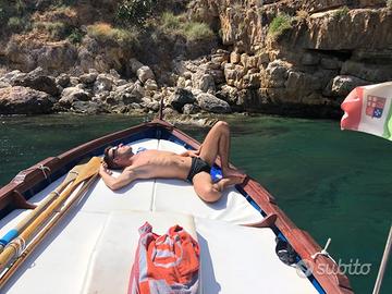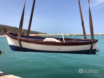 Gozzo ligure artigianale, realizzato da maestro d'ascia savonese con motore entrobordo (Lombardini 9 cv 1 cilindro ). La barca è stata utilizzata sul set di Indiana Jones girato a Castellammare poiché barca storica. L'imbarcazione, perfettamente funzionante, calafatata nel 2021 e restaurata completamente a febbraio 2023. Oggi non necessita oggi di nessun restauro. il gozzo è stato adattato alla crociera turistica con cuscineria in similpelle bianca. Motore completamente revisionato la scorsa estate. Bassissimi consumi (1 litro di Diesel per 1 ora di navigazione). Possibilità di inserire albero per andare a vela latina. Lunghezza 5,60 mt e larghezza 1,60 ca. Colore fascia superiore mogano e murate bianche con antivegetativa blu scuro messa a maggio 2025 (3 mani). Pompa di sentina e filtro carburante cambiati a maggio. La barca si trova al momento ormeggiata nel Trapanese lato Palermo ed e' in pronta consegna.