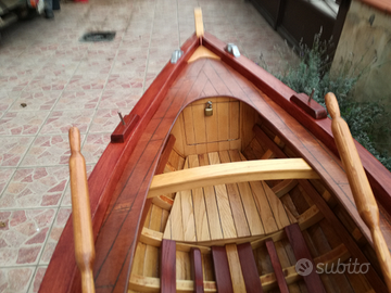 Pezzo unico per veri intenditori di Modello gozzo napoletano realizzato da modellista esperto con criteri di maestranza d'ascia tutto in legno di varie qualità. Chiglia in abete russo ordinate in lamellare marino fasciame in castagno francese e altri componenti in legno di noce e mogano. Il giro di prua è di poppa della chiglia in tre pezzi incastrato a coda di rondine per seguire la venatura del legno e dargli più robustezza.Il fasciame piegato a caldo incollato con resina bicomponente marina e inchiodato e fatta calafatura dello scafo. Modello di grandissimo effetto estetico adatto a svariati ambienti come locali vetrine esposizione ecc. Lunghezza del modello f.t.160cm completo di supporto con colonne tutto in legno due remi in legno in più (a scopo didattico) c'è un motorino elettrico che fa girare l'elica tramite interruttore nascosto. Ovviamente parliamo di un modello STATICO che non va in acqua anche se rispetta le tecniche costruttive di un modello vero e navigante. A vostra disposizione per qualsiasi informazione in merito.