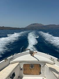 Accessoriata con tendalino come da foto, due serbatoi gasolio da 70 lt, serbatoio acqua e doccia con autoclave nuovo di zecca, pompa di sentina, ecoscandaglio Koden con trasduttore in bronzo, gps Furuno, mulinello da murata Cristal Fishing, con canna e salpa palangaro, ancora e salpa ancora, cuscineria perfetta, due grossi Gavoni a poppa, uno a dx e uno a sx più uno centrale, doppi comandi a prua e a poppa, 2 batterie da 100 Ah. Regalo invasatura in acciaio zincato resistentissima. Chiamare solo se veramente interessati. La barca si trova in acqua ed è visibile e disponibile a qualsiasi prova previo appuntamento.