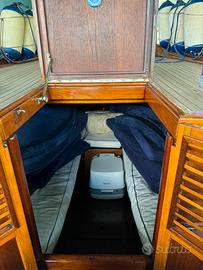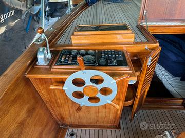 La barca è stata totalmente refittata con lavori conclusi a luglio 2025. Legno di mogano nell'opera morta e scafo in vetro resina. Per l'opera morta utilizzata vernice Epifanes con 12 mani.
