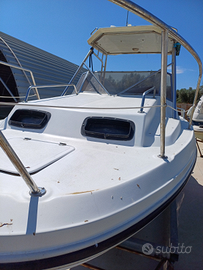 Ampio tavolo conviviale da pozzetto rimovibile. Cabina 3 posti letto . Wc chimico. Gps. Cucina a gas , Doccia. Visibile Canino (VT). Carena fatta in maggio 2025,insieme a riverniciatura completa, a revisione motore principale ed ausiliario. 2 batterie nuove.Ampia plancetta di poppa che aumenta la stabilita' della barca. Al momento e' tirata in secco in rimessaggio. Rifatte in tek sintetico tutte le superfici calpestabili.Astenersi sognatori e perditempo.