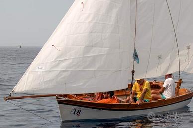 Lancia sorrentina, pontata con cuscineria , armo latino, motorizzata con Honda 10 CV , come in foto, tutta frassino e mogano. Pronta per il mare, vele nuove , possibilità di carrello stradale omologato 900 kg.