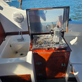 dentro in cabina tutto rivestito in pelle spiagetta fatta da un artigiano con scaletta.
