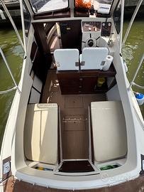- Nuovo impianto elettrico con pannello solare -2 batterie, x servizi e x motore - Serbatoio carburante 80 L.-Serbatoio d'acqua dolce 100 L. - doccia -Bagno con wc e lavandino -frigo -Tavolino -Tendalino fisso in acciaio sopra la guida + tendalino muovibile -Ecoscandaglio Lowrance -2 Pompe di sentina automatiche -Salpa ancora elettronico -Cucinotto + lavello -Radio -2 Ancore una anteriore e una posteriore -Stacca batterie -Luci di via,Luci led blu e bianche pozzetto esterno + striscia led luce bianca interna -kit di salvataggio per 7 pers. -2 porta canne a poppa -Prendisole eccezionale a prua per 3/4 persone -Divano di poppa trasformabile in prendisole/letto