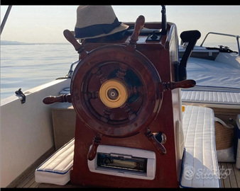 Cuscineria completa, Doppia batteria da AH 100, pompa di sentina normale e automatica, luci di via, tendalino in acciaio, dotazioni di bordo.