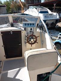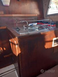 gozzo TECNOFIBER in vetroresina motore ENTROBORDO DIESEL LINEA ASSE 1 X 20 HP VETUS - n 2 posti letto - wc marino in locale separato fornello lavello finestrature apribili - prendisole a prua telo sole roll bar inox abbattibile- scaletta bagno supporto motore ausiliario - scaletta - BENE USATO IVA ESENTE