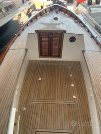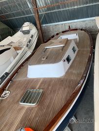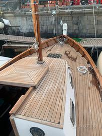 Si Vende Gozzo a vela latina in legno di mogano progettato da Sergio Lupoli di mt 9,00, larghezza mt 2,87 .Semi cabinato coperta in teak nuova cambiata da due anni ,cucina due fuochi ,wc elettrico con lavandino e doccia interna e due esterne,motore cc2200 e 120cv Volvo Penta,verricello elettrico musone ancora e catena cambiati da un anno. Appena rimessata e verniciata,dotazioni di bordo e pronta all'uso.E possibile visionarla in cantiere a S.Giovanni