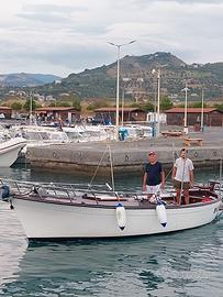 Splendido Gozzo sorrentino semi planare 8 mt fuori tutto con spiaggetta di poppa e scaletta per risalita. Sotto cabina con due posti letto e svariate prese 12volt e usb. Scafo in vetroresina e interno in mogano rifatto a giugno 2024. Cuscineria nuova giugno 2025. Motore 25cv diesel entrobordo Nanni Mercedes . Sempre rimessato ed in perfetto stato. Consumi pari a zero! Omologato fino a 12 persone con giubbotti salvagente (due bambini) Munito di ogni confort. Per chi vuole godersi il mare in tranquillità. Vendo per cambio categoria. Per altre informazioni è per qualsiasi prova contattatemi. Tutt'ora in acqua e visionabile in qualsiasi momento.