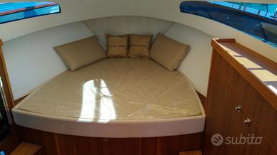in rada. Divano passeggeri con gavoni sottostanti, mobile cucina con piano cottura a n°2 fuochi ad Induzione, lavello in acciaio, miscelatore acqua calda e fredda, frigorifero Inox da 130 lt, tavolo regolabile in altezza con supporto elettrico telescopico, vano portaoggetti.