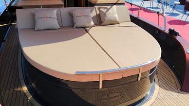 ampi prendisole a prua e poppa con cuscineria di pregio e plancetta di poppa ideale per rilassarsi