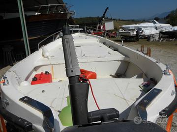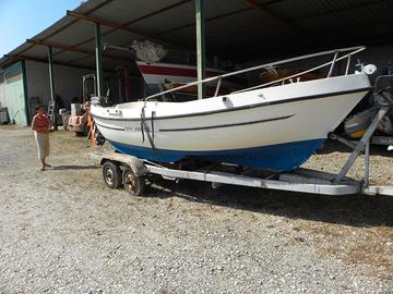 Robusto gozzo vetroresina metri 5,60 adatto pesca/svago. Motore Johnson 15 cv 2 t.