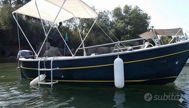 Vendo Gozzo Mimì in vetroresina 5,60 mt, motore fuoribordo Yamaha 15cv, completo di cuscineria, tendalino e battagliola in acciaio inox, presa corrente 12v, scaletta acciaio e legno, doccia, sentina, serbatoio acqua e benzina 30 litri, parabordi, ancora e ancoretta di rispetto, attrezzatura di emergenza.