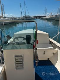 Gozzo vetroresina 730 GT anno 2014 completa di Motore Suzuki DF 40 /70 EFI Anno 2022 con 250 ore di navigazione) Si guida senza patente. Scheda Allestimento n. 1 Bottazzo in gomma nera perimetrale misura 52 n. 1 Consolle di guida biposto completa di: timone in acciaio, timoneria idraulica, tientibene in acciaio inox, plexiglass bronzo, pannello elettrico, bussola, tromba, cassetta pesca frontale, 2 portelli accesso vano batterie e portaoggetti, Tendalino bianco come da foto e luci di via n. 1 GPS Garmin n. 1 Panca di guida ampia n. 1 Salpa-ancora elettrico modello Italwinch (nuovo 2023) completo d.8 n. 2 Batterie marine con stacca batterie doppio n. 1 Prese da 12 V n. 4 Bitte americane cm 25 + 2 da 15 cm n. 4 parabordi n. 2 Goltari (1 a prua e 1 a poppa) n. 2 Portacanne in acciaio inox incassati n. 1 Serbatoio carburante in acciaio inox da 60lt completo di sfiato in murata n. 1 Prendisole di prua da 2,30 mt in compensato marino rivestito in resina con portellone da mt 1 x 0,80 con vani interni di diversa profondità adibiti a porta canne. n. 2 Portacanne in acciaio inox incassati n. 1 Serbatoio carburante in acciaio inox da 60lt completo di sfiato in murata n. 1 Prendisole di prua da 2,30 mt i n. 1 Tendalino per coprire la parte di prua n. 1 Set di cuscineria rifatta (2023) n. 1 Copri-consolle e copri-panca in tessuto n. 1 Plancia di poppa Osculati con scaletta di risalita comoda sotto plancia a 4 gradini richiudibile (2021) Un'ottima barca da pesca con pochi fronzoli e tantissimo spazio., ideale per uscite in famiglia dopo pesca.
