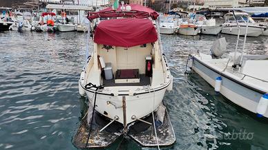 Per realizzo immediato Vendo Gozzo in vetroresina di costruzione artigianale motorizzato con motore entrobordo e trasmissione in linea d'asse 40 cv senza patente cabinato con bagno e letto a due piazze.