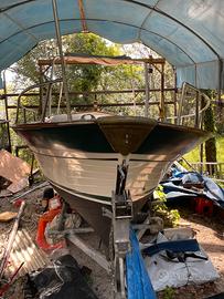Gozzo, 7,20 in ottime condizioni, sempre tenuto al coperto, motore vetus diesel perfettamente funzionante ma da revisionare e tagliandare. Serbatoio acqua, doccia, roll bar in acciaio, tenadaluni e cuscineria in ottimo stato, visibile a Minturno