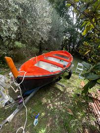 Vendo gozzo primula mare di 4 metri in vetroresina. Nel prezzo sono inclusi: un carrello (non omologato), remi in legno nuovi, parabordi nuovi, ancora a grappino nuova, mezzo marinaio, salvagenti e un motore suzuki 8 cavalli 2 tempi. Presenti anche (non ci sono nelle foto) un pagliolato in legno nel pozzetto e un piano in legno a prua