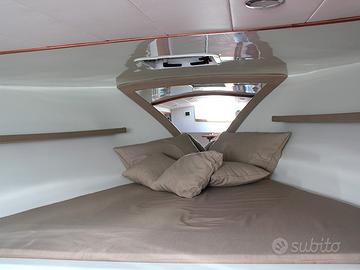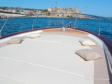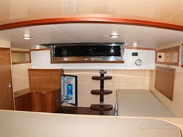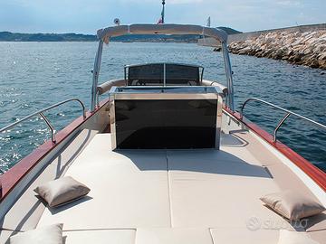 Dispone di numerosi ampi gavoni per dotazioni, bagagli, accessori e altri oggetti. Il roll bar dispone di due tendalini, anteriore e posteriore, che coprono circa 3/4 dell'imbarcazione. La solida carena in vetroresina valorizza lo scafo disponibile in vari colori, su specifica richiesta del cliente. Ottime le prestazioni, grazie ai motori diesel (questo modello è disponibile sia in versione monomotore, sia bimotore) e alla carena planante; è possibile superare i 30 nodi con consumi contenuti.