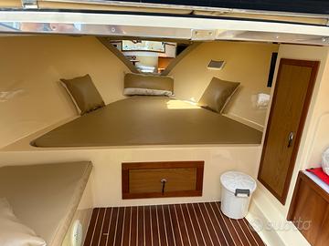 Cantieri Tirrenia , Viveur 28, anno 2013 Gozzo planante con velocità max di 30 nd, dí crociera 18/20, consumi bassissimi. Prua molto ampia, larghezza 3,10 , omologata per 12 persone con abilitazione al noleggio. Lavori effettuati: sbarco motore per revisione generale, coppa olio nuova, turbine ed intercooler rifatti, asse nuovo, revisione elica, falca portata a zero. 1080 ore, elica di prua, motore VM 230 CV , Cuscineria e tendalini rifatti nuovi 2024, verricello elettrico con catena ed ancora in acciaio, flap nuovo, ben tenuta per qualsiasi prova il gozzo è in acqua.