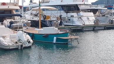 Gozzo mt. 6,50 vtr motore 25 cv socoges (hyundai) anno 2004 sbarcato 2025, perfette condizioni. Spiaggetta posteriore enorme e spaziosa, con scaletta risalita a scomparsa. Gozzo pontato in tek, cuscineria nuova perfetta, tendalino nuovo con due candelieri di poppa, verricello elettrico, salvagente giubbotti e dotazioni di legge. Consumi irrisori. Vendo a malincuore per passaggio a categoria superiore
