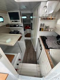 Vendesi Gozzo Gipsy di 7.50 mt fuori tutto,completamente refittato, con 4 posti letto, dinet con tavolo da pranzo e angolo cottura con cucina 2 fuochi e frigo trivalente, tv, radio, ecoscandaglio,strumentazioni nuove. Doppie batterie servizi + una per il motore nuove, bagno completamente rifatto con we nautico tutto nuovo. Luci di via, fonda e illuminazione di servizio interno e esterno tutto nuovo. Doppia pompa di sentina di cui una con scarpetta automatica tutto nuovo..Serbatoio acqua 150 litri più collettori e pompa autoclave tutto nuovo... motorizzata con lombardini marine 25cv tagliandato e revisionato, con pompa acqua scambiatore nuova con tuberie disel,acqua, olio nuovi..!! Doppio filtro gasolio e separatore acqua/disel.. Generatore 1000wt silenziato nel gavone di poppa con scarico nel Passascafo... Panche esterne, prendisole di prua, e seduta della timoneria su