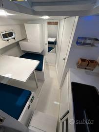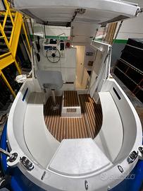 Comfort: cuscineria nuova, tendalino nuovo, oblò nuovi, tappezzeria nautica nuova con rivestimento isolante ignifugo Armacell 9mm. Frigorifero con congelatore 12V.