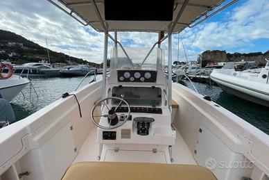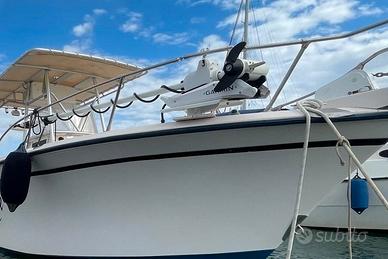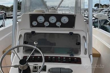 Grady White Chase 263, anno 1997 Carena a V, dotato di console centrale con copertura su telaio in alluminio e tessuto Sunbrella, e 4 portacanne integrati. Refitting 2024: Lucidatura completa e carena portata a zero Refitting 2025: Golfare di prua Lunghezza: 7.92 mt. Larghezza: 2.59 mt. Motori: 2x250 Suzuki sempre tagliandati Anno 2013 Ore di moto 450 Serbatoio Carburante 450lt Accessori Eco/Gps Garmin Trasduttore TV Radio; Bussola; Lettore CD Impianto doccia con serbatoio 80lt Verricello elettrico; Ancora con 50mt di catena; Ancora di rispetto; Altoparlanti pozzetto; Pompa di sentina elettrica e manuale; WC chimico; Pompa per acqua di mare; Caricabatterie 220 con cavo gommato; Portacanne a riposo per 12 canne; Quadro elettrico con interruttori/magnetotermici Doccetta; Cuscineria pozzetto; Motore elettrico di prua Kraken Garmin 115lb 36v gambo esteso a prua con batteria litio 100ah Tutti i contenuti (caratteristiche, metrature, accessori, ecc. ) degli annunci sono puramente indicativi, potrebbero contenere imprecisioni o errori, pertanto non comportano nessun vincolo contrattuale. Per garantire la privacy, l'indirizzo può non rispecchiare esattamente l'ubicazione del natante ed è utile al solo fine di fornire un riferimento generico per la sua localizzazione ed un ausilio alla consultazione. Il prezzo è soggetto a mediazione agenzia. Gli acquirenti hanno diritto di ispezionare personalmente l'oggetto e/o di sottoporre il natante a perizie a loro spese, il mediatore non può essere considerato responsabile delle probabili inesattezze qui riferite. Consigliamo di visionare sempre l'oggetto prima dell'acquisto.