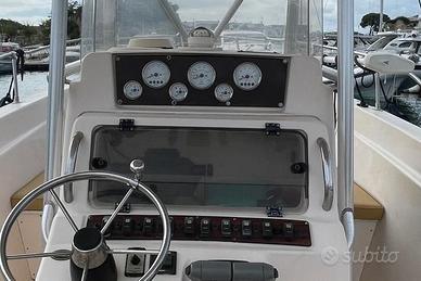 Grady White Chase 263, anno 1997 Carena a V, dotato di console centrale con copertura su telaio in alluminio e tessuto Sunbrella, e 4 portacanne integrati. Refitting 2024: Lucidatura completa e carena portata a zero Refitting 2025: Golfare di prua Lunghezza: 7.92 mt. Larghezza: 2.59 mt. Motori: 2x250 Suzuki sempre tagliandati Anno 2013 Ore di moto 450 Serbatoio Carburante 450lt Accessori: Eco/Gps Garmin; Trasduttore; TV; Radio; Bussola; Lettore CD; Impianto doccia con serbatoio 80lt; Verricello elettrico; Ancora con 50mt di catena; Ancora di rispetto; Altoparlanti pozzetto; Pompa di sentina elettrica e manuale; WC chimico; Pompa per acqua di mare; Caricabatterie 220 con cavo gommato; Portacanne a riposo per 12 canne; Quadro elettrico con interruttori/magnetotermici; Doccetta; Cuscineria pozzetto. REFITTING IMPIANTO ELETTRICO APRILE 2026 Motore elettrico di prua Kraken Garmin 115lb 36v gambo esteso a prua con batteria litio 100ah Tutti i contenuti (caratteristiche, metrature, accessori, ecc. ) degli annunci sono puramente indicativi, potrebbero contenere imprecisioni o errori, pertanto non comportano nessun vincolo contrattuale. Per garantire la privacy, l'indirizzo può non rispecchiare esattamente l'ubicazione del natante ed è utile al solo fine di fornire un riferimento generico per la sua localizzazione ed un ausilio alla consultazione. Il prezzo è soggetto a mediazione agenzia. Gli acquirenti hanno diritto di ispezionare personalmente l'oggetto e/o di sottoporre il natante a perizie a loro spese, il mediatore non può essere considerato responsabile delle probabili inesattezze qui riferite. Consigliamo di visionare sempre l'oggetto prima dell'acquisto.